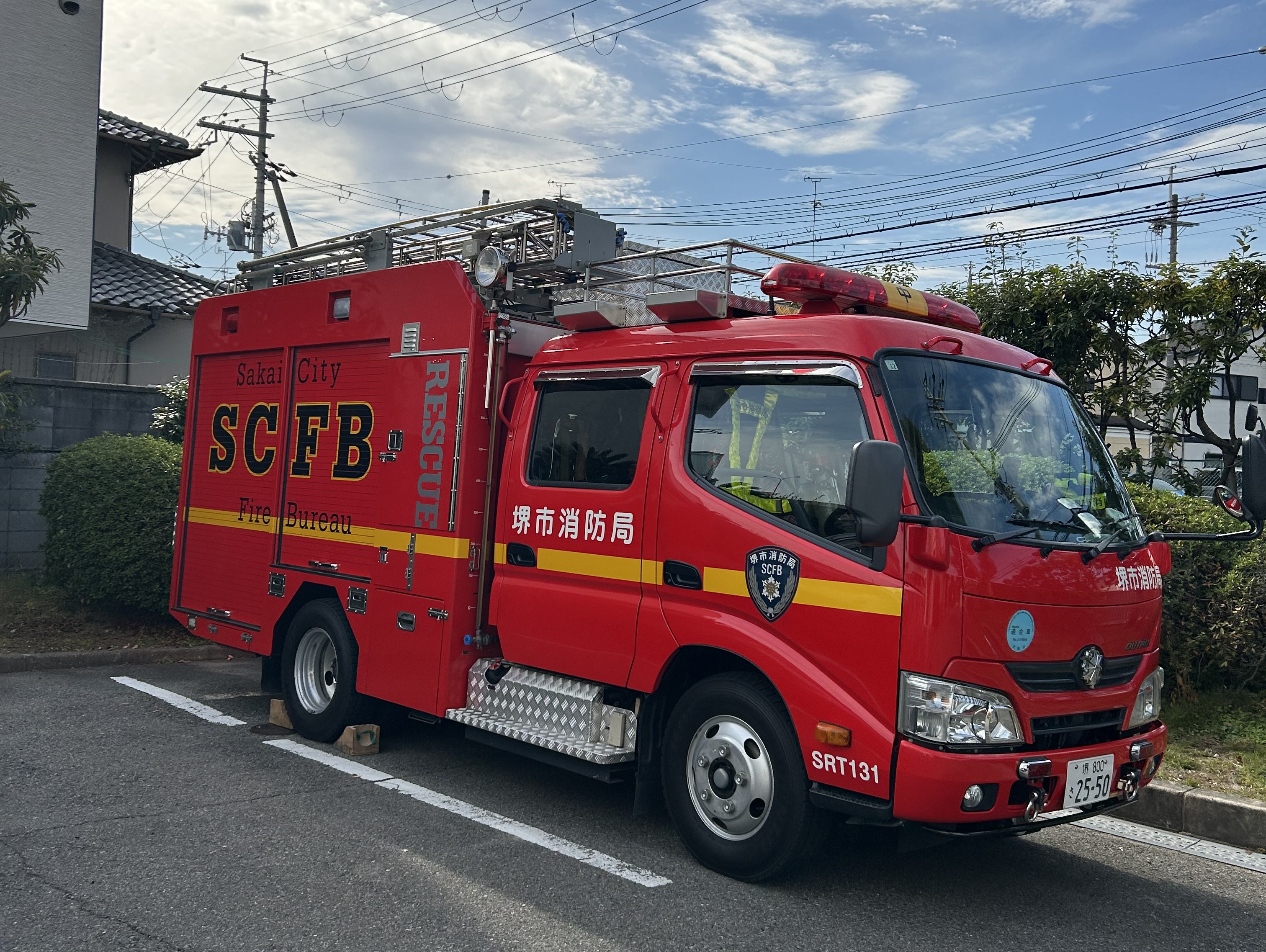 堺中消防署の協力による、消防訓練とAEDの講習を受けました